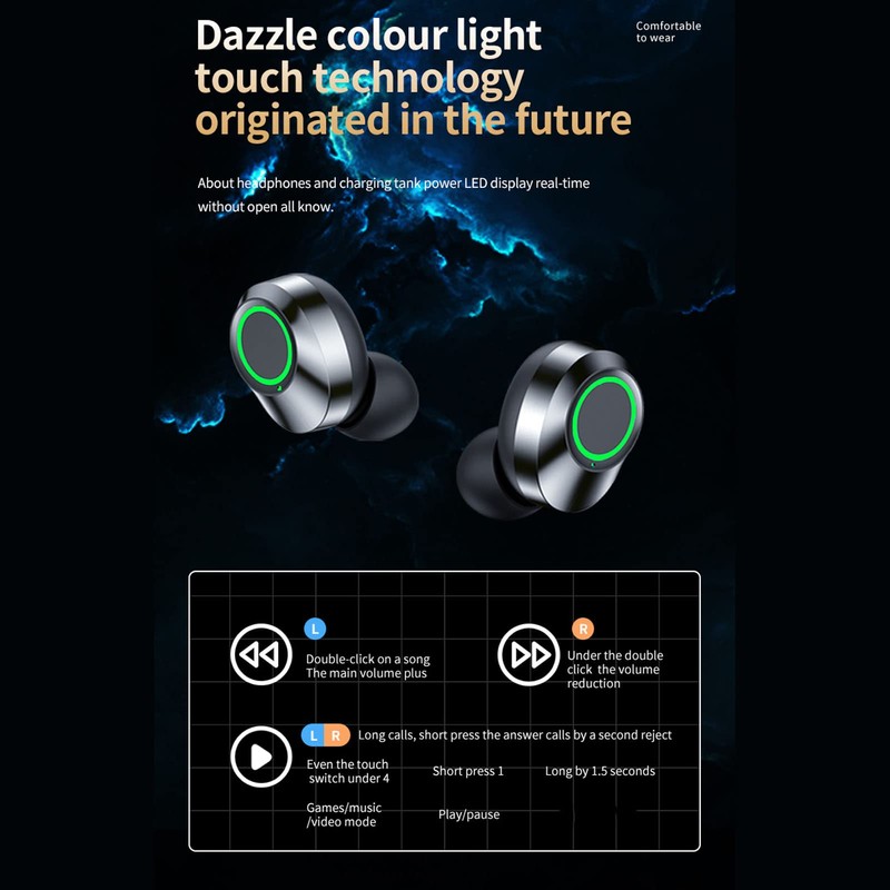 - LARGE CAPACITY CHARGING CASE: Touch control headset has a large capacity charging compartment, not only to charge the headset, but also to your phone, to meet your different needs of use.