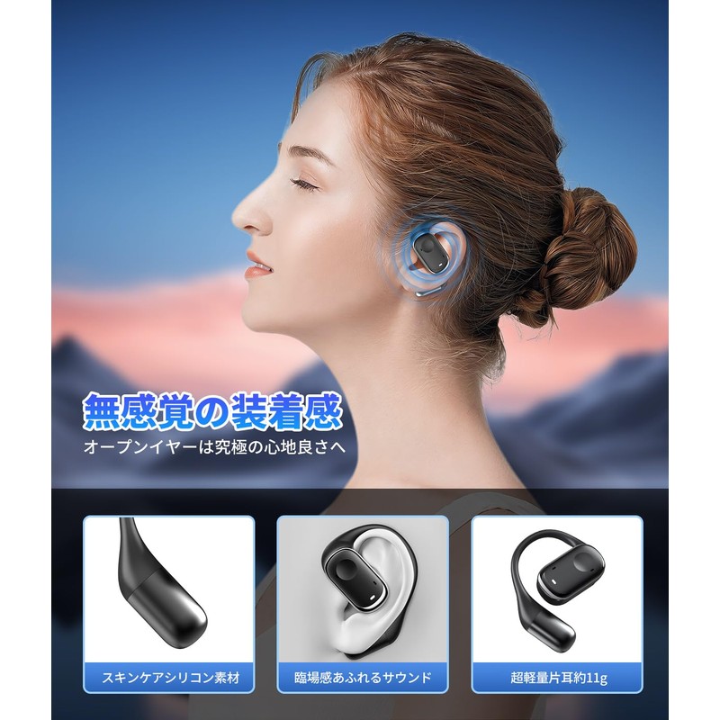 - (Sound Directional Conduction Technology, Sound Leak Proof & Lightweight Design Only 0.4 oz (11 g) ) Based on the aerodynamic conduction principle, the structure of the open earphones has been optimized to produce directional sound transmission. The pronunciation unit completely covers the ear hole, providing optimal effect for both "high sound quality" and "bass leak" for more accurate sound penetration. In addition, an acoustic shield material is used inside the earphone to block sound. This provides a barrier to prevent internal sound from leaking out. Minimizes sound escape and reduces sound leakage. Also, the 11g lightweight design gives you a natural feel that you will forget you are wearing it