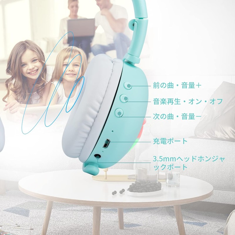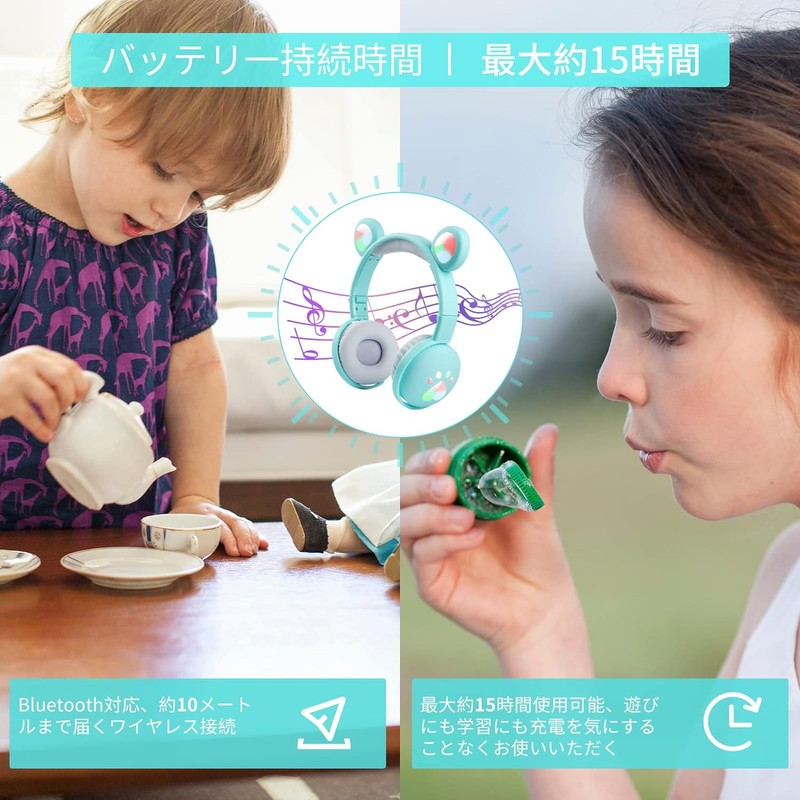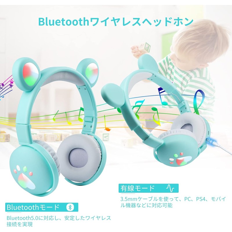 Bluetooth Wireless Headphones, Foldable, Cute, Bear, Headphones, Bluetooth 5.0, with Microphone, Gaming Headphones, Wireless Wireless, LED Lights, Tri-Color Conversion, Wired