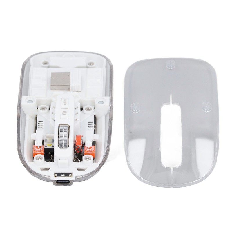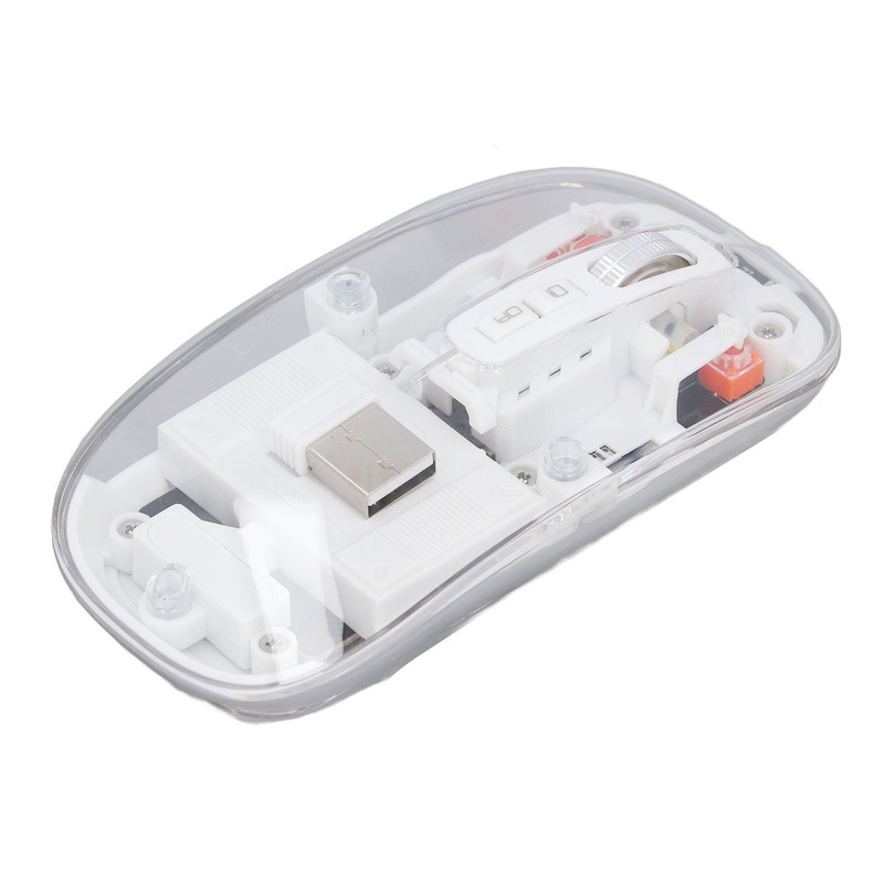 Bluetooth Wireless Mouse BT1 BT2 2.4GHz 3 Mode Silent Adjustable DPI Rechargeable Transparent Mouse for PC Laptop Tablet White