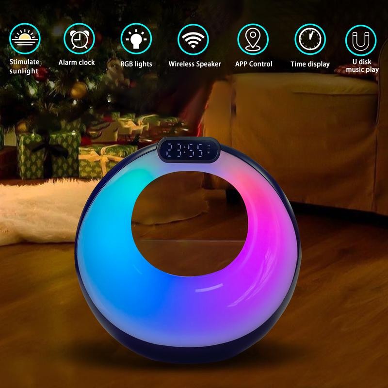 bluetooth Wireless Speaker with Smart Sunrise Hatch Alarm Clock, Wireless Speaker with Intelligent Atmosphere Lamp, RGB Night Light with APP Control Table Desk Lamp for Bedroom Home &Office Gift - Color: white