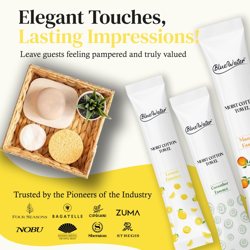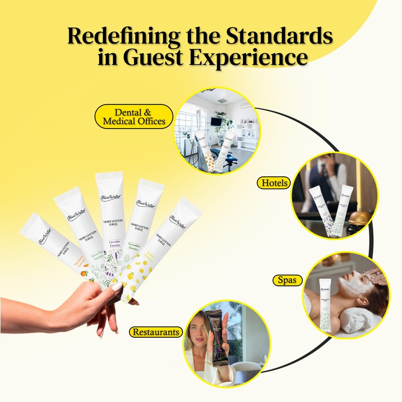 Introducing our new single-use, individually-wrapped scented towelscrafted to redefine refreshment and elevate hygiene wherever you go. Infused with luxurious fragrances like cucumber, lemon, and green tea, these towels bring a spa-like experience to your hands in seconds. Perfect for both personal and professional settings, our towels are ideal for travel, dining, workouts, or hosting events. Each towel comes individually wrapped, ensuring maximum freshness and hygiene for every use. Designed for versatility, they can be used hot, cold, or as-is to suit your needs. Made from soft, premium materials, these towels are gentle on the skin yet highly effective at eliminating odors and refreshing your senses. Whether you're offering a premium touch to guests or enhancing your everyday routine, this new addition is the ultimate blend of convenience and sophistication. Experience the innovation of freshnesstry our new scented towels today and transform the way you refresh and cleanse!