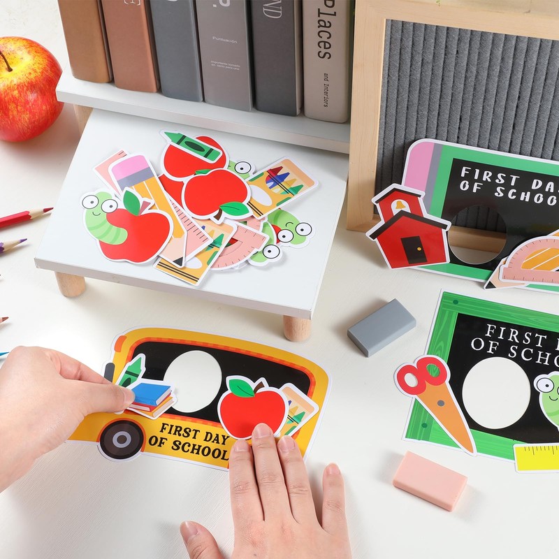 - Packaging List: you will receive 24 sets of 6 different designs frame crafts for the first day of school, including 24 photo frames and 72 decorative cutouts, as well as 24 circular magnets and 150 glue dispensing, providing you with a complete set