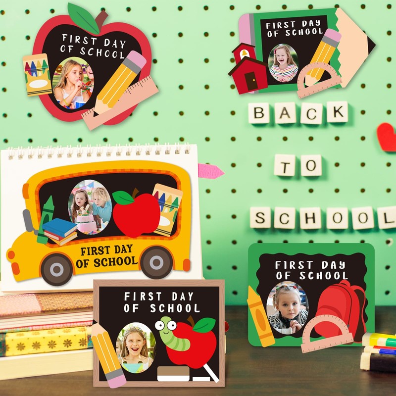 - Theme Based Style for Festive Appeal: our photo frame adopts the classic first day of school theme shape design, such as backpacks, apples, school bus pencils, etc., which is lively and cute, bringing a lot of fun; Suitable size for displaying photos, suitable for Back to School craft activities in schools, art, and craft clubs