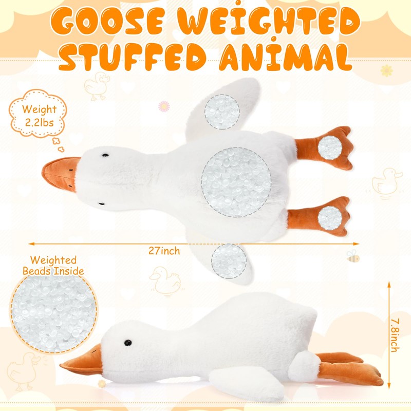 - Cute and Attractive Design: adorable and attractive designed weighted goose stuffed animal toy; Its vivid appearance sparks children's imagination, making it an ideal companion for playtime; Ideal for hugging, squeezing, and cuddling during nap times, this weighted stuffed animal offers a sense of comfort and safety that aid in relaxation