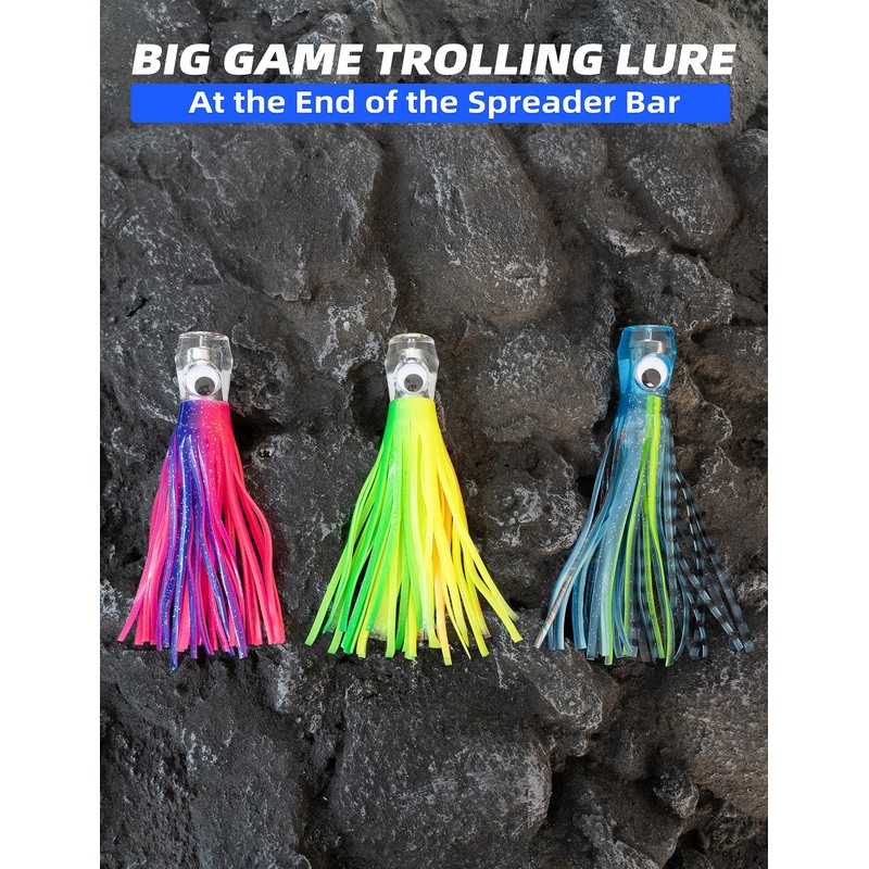 - Big Game Trolling Lure: Equipped with a big game trolling lure that has lifelike action and adds an additional attractant to the spreader bar.