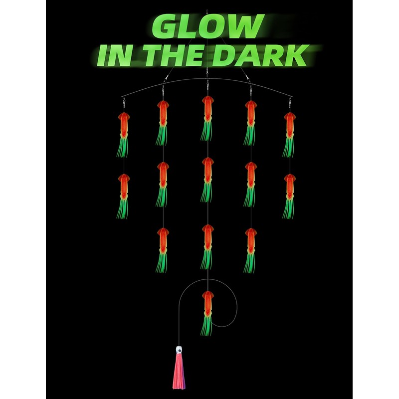 - Application: This lure is designed to mimic the movements of a school of squid or bait fish which makes it highly effective at attracting predators such as wahoo, tuna, marlin, sailfish and mahi mahi