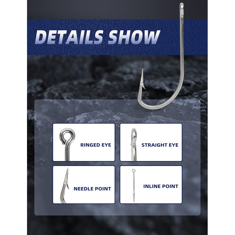 - Premium Stainless Steel Construction: The O' Shaughnessy hooks are crafted from high quality stainless steel, ensuring superior strength and durability to withstand the toughest fishing conditions. These hooks are built to last, providing you with the confidence you need when tackling a variety of fish species.
