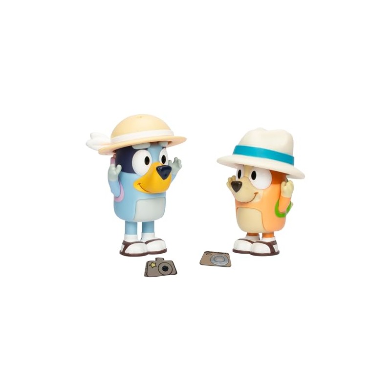 Bluey Figure 2-Pack - On Holiday, 2.5 Inch Figures with Accessories, Kids Can Recreate Their Favorite Moments from The Episode, Figures Include Removeable Hats