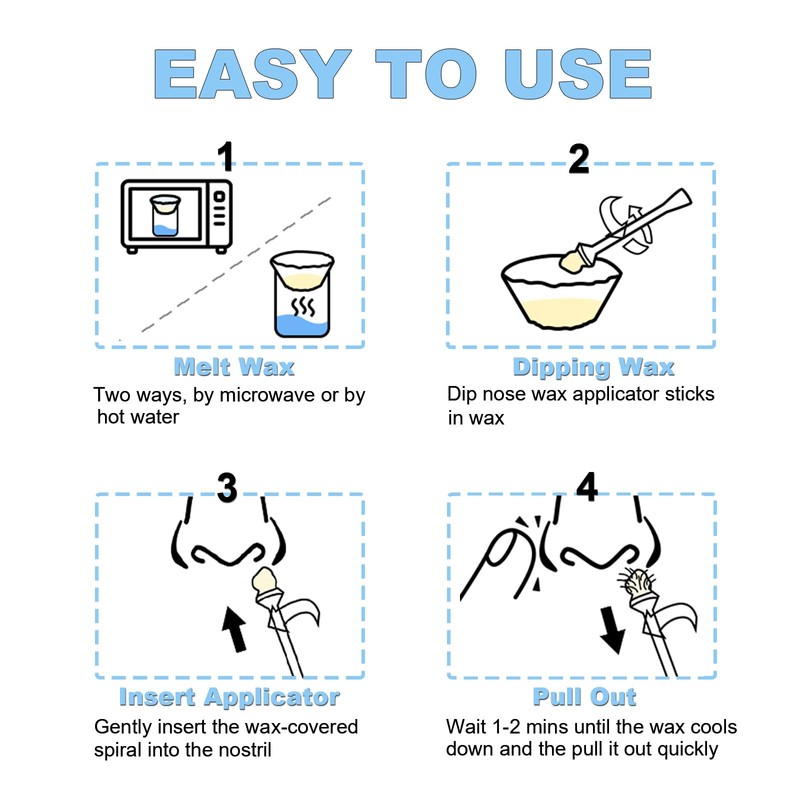 - EFFECTIVELY & PAINLESS: Our wax nose sticks has a spiral design that conforms to the structure of the nostrils to minimize the pain while ensuring effective hair removal. Many people who have used the nose wax applicators have far less pain than direct hair removal