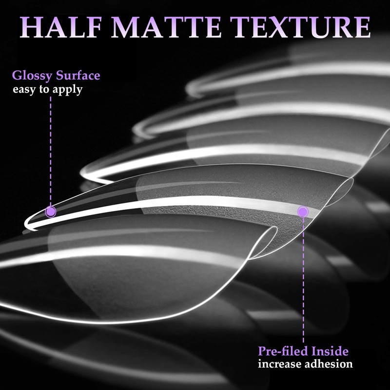 - PROFESSIONAL PRE-SHAPED NAILS: Thickened front edge, not easy to break; Thin back edge, fit naturally, convenient to press on nails beds tightly, without feeling uncomfortable "tightness". No need to polish, save your time and harmless to your nails