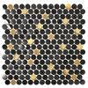 - Mesh Back Mosaic Sheets: The gold black penny round tiles are mesh mounted. It's very easy for cutting during installation.