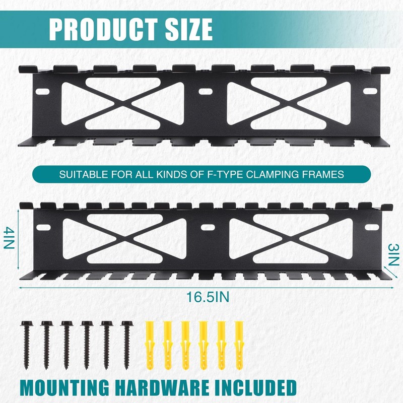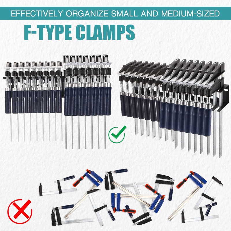 - Save Space: our F-type clamp holder can be mounted on your tool box, cart or wall, providing good convenience and organization; Creating an organized and fully utilized environment suitable for professionals and DIY enthusiasts