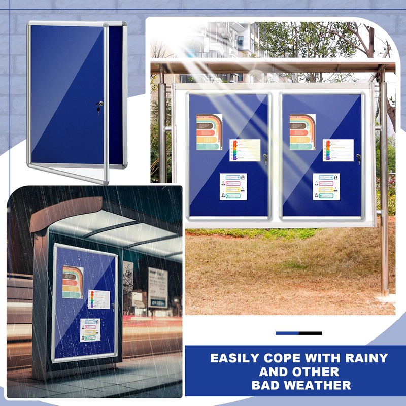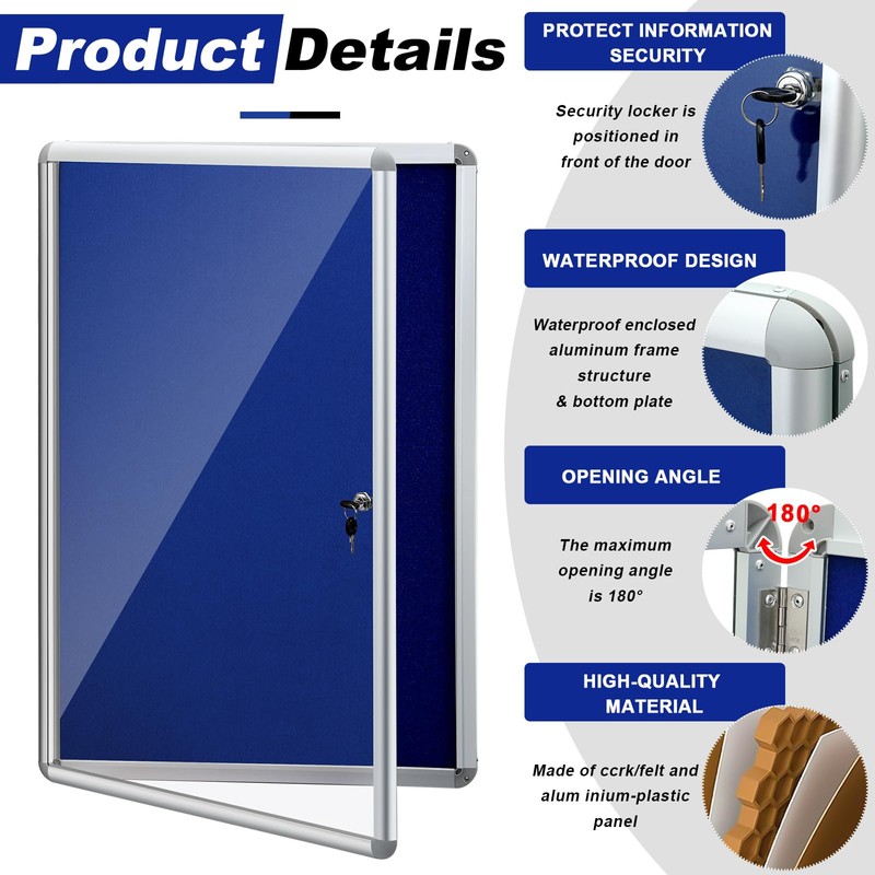 - Quality and Durability: constructed with resilient lockable noticeboard encased in a serviceable aluminum alloy frame, this outdoor bulletin board ensures longevity; It features an anti breakage acrylic door, ABS rounded corners, and a PET transparent window, offering a clear and undamaged view of your essential notes and documents
