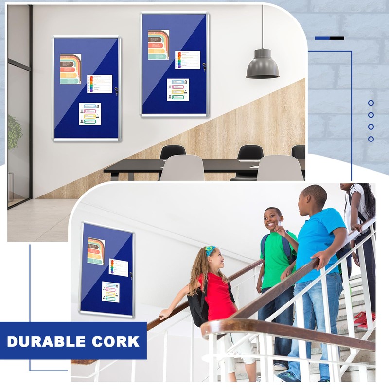 - Enhanced Information Security: experience paramount protection for your valuable information with our security lockable cork board; Equipped with a lockable acrylic door and accompanying keys, it ensures your announcements and notices remain secure, visible, providing peace of mind and safeguarding your displayed information