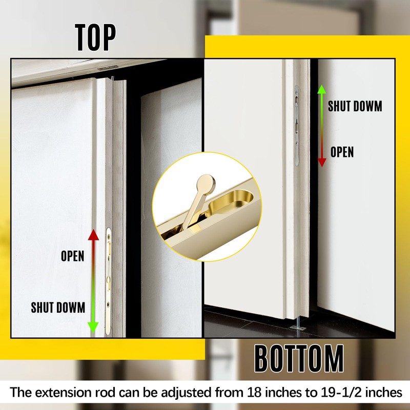- Size Compiled to Versatility: our extension flush bolt measures about 7-3/8" long, and 3/4" wide; Plus, the rod extension is adjustable, ranging from 18" to 19-1/2", offering the flexibility you need for various door designs