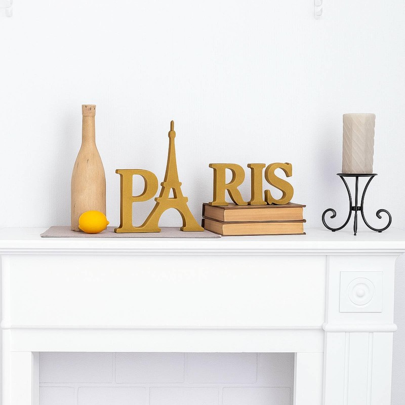 Blulu Paris Decor for Bedroom Wooden Eiffel Tower Table Decor Eiffel Tower Sign Letters for Home Living Room Office Bathroom (Gold)