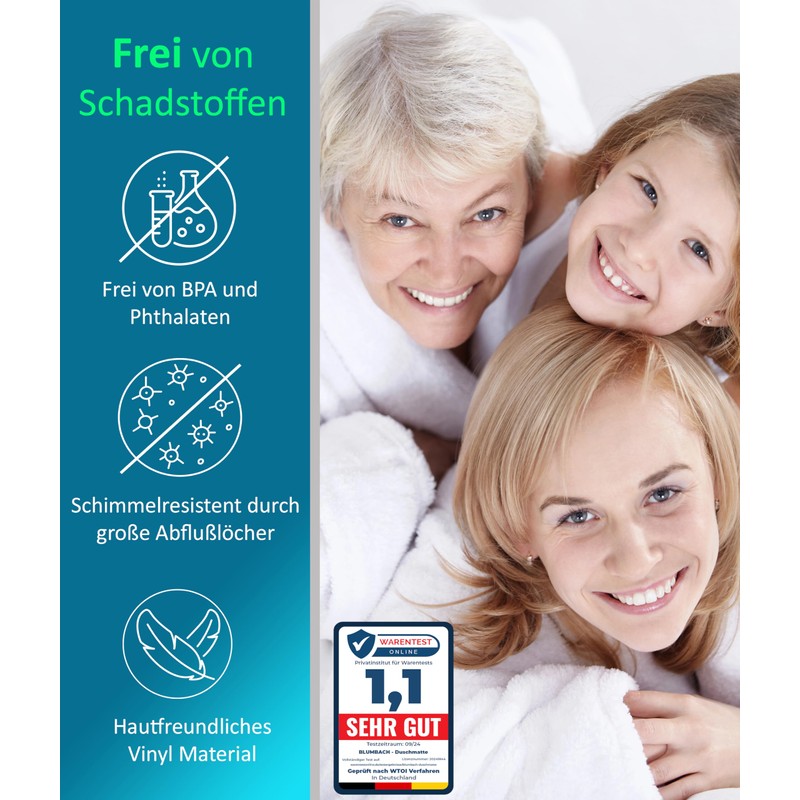 - Extremely non-slip – with our Blumbach shower mats you can shower safely and without worry. 162 strong suction cups and the non-slip diamond surface make them very non-slip.