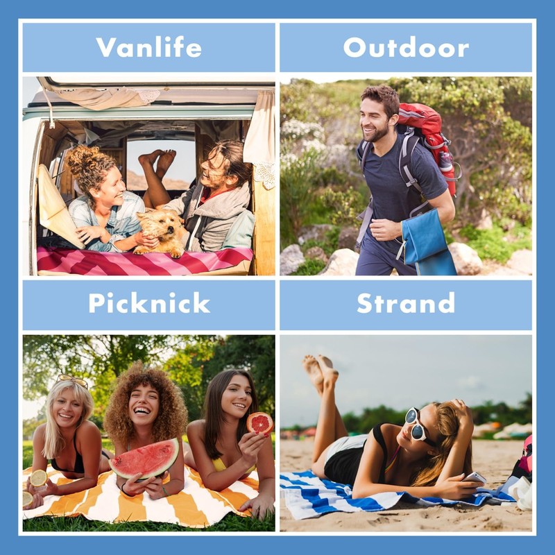 - SANDABWEISEND: Durch die feine Webung und die Stoffbeschaffenheit ist das Strandhandtuch xxl sandabweisend und kann einfach ausgeschüttelt werden. Du kannst es so bequem als Stranddecke und als Handtuch schnelltrocknend verwenden.