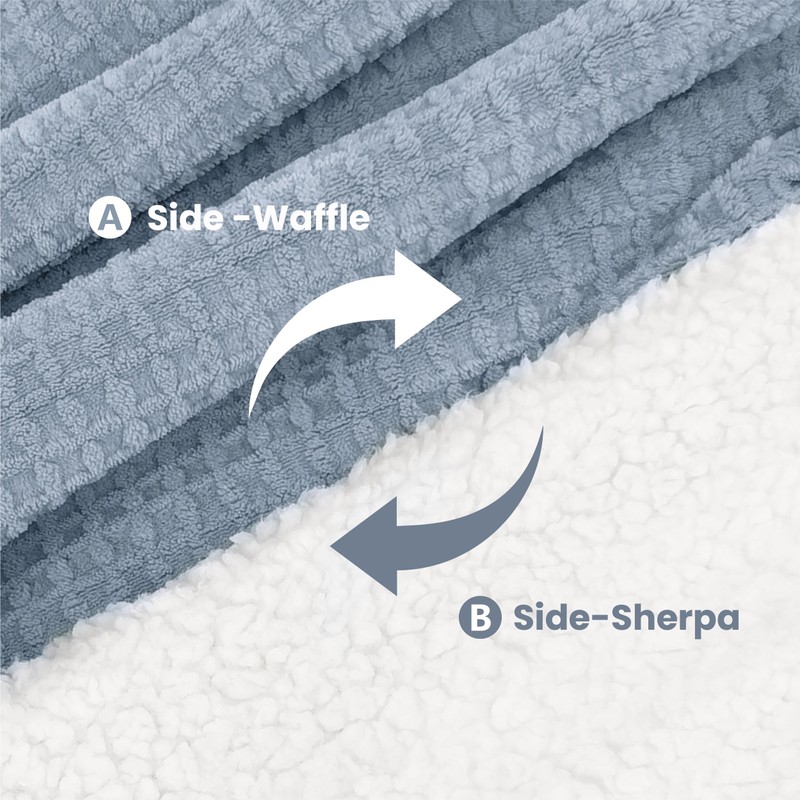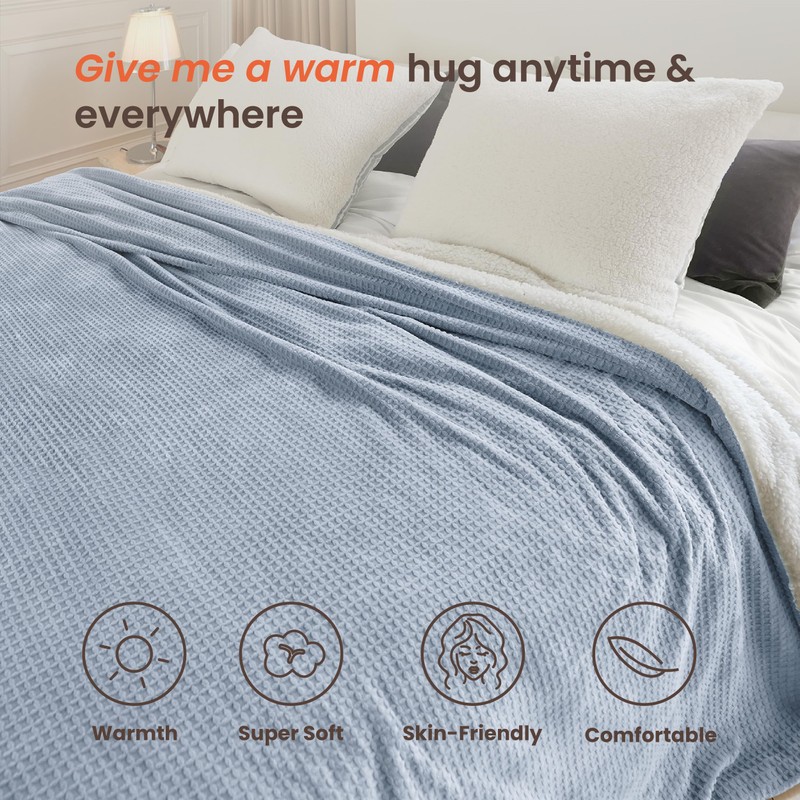 blunique Heated Blanket Electric Blanket Queen Waffle, 84x90 Inches Dual Controllers Sherpa Fleece Fast Heating Blanket 6 Heating Levels & 10 Hours Auto Off ETL Certification, Haze Blue Queen