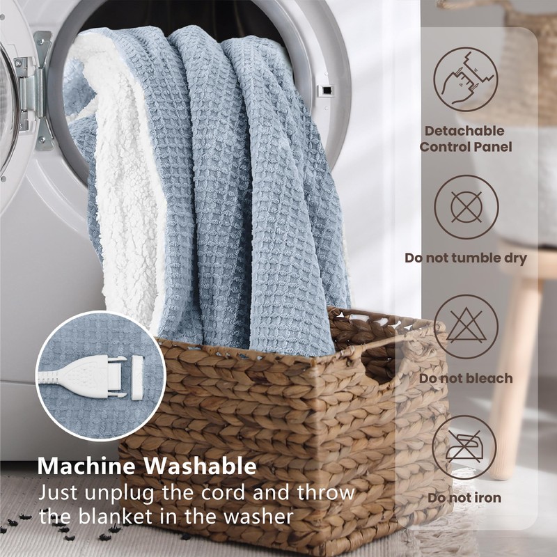 - Premium Waffle Electric Blanket - Safety and Innovation Combined: Safety is our top priority with the Waffle Electric Blanket. We employ cutting-edge spot welding technology to secure heating elements, preventing overlaps and ensuring your safety by avoiding excessive heat. The intentional and regular pattern of weld points on the fabric is a testament to our commitment to safety and innovative design. Choose comfort with confidence, choose the Waffle Electric Blanket.