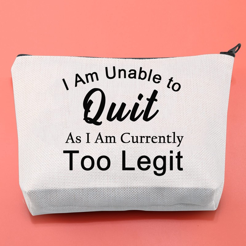 - Bag with words: "I Am Unable to Quit As I Am Currently Too Legit ", a perfect gift for any women.