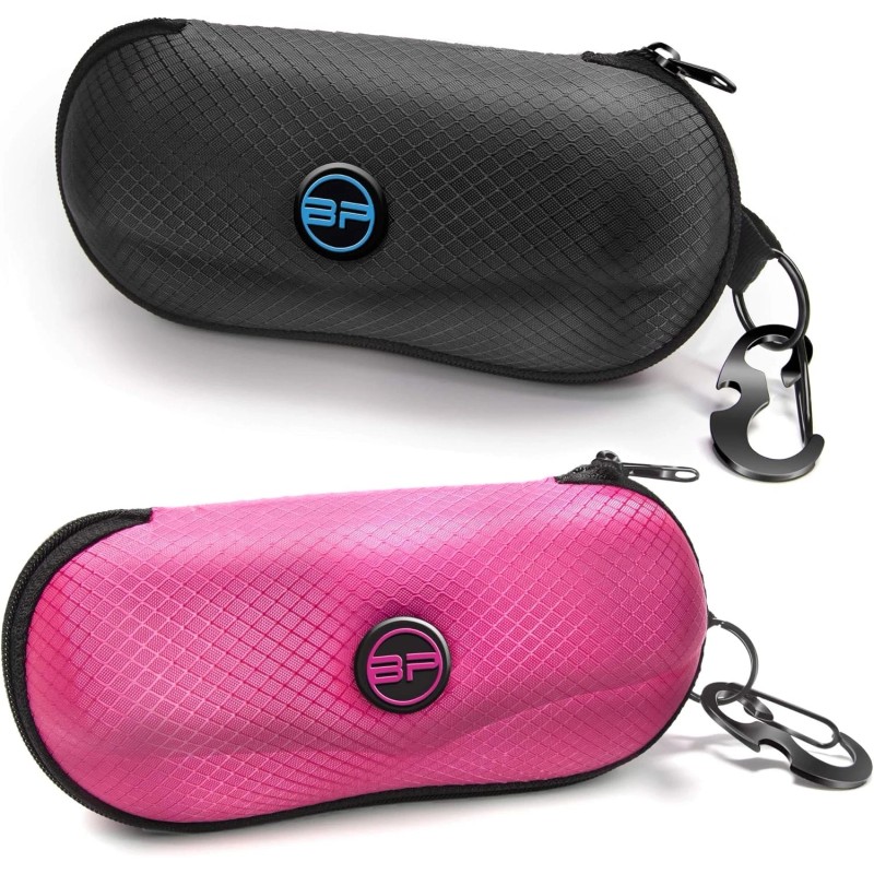 BLUPOND Sunglasses Case Semi Hard EVA Shell with Metal Hanging Black/Pink