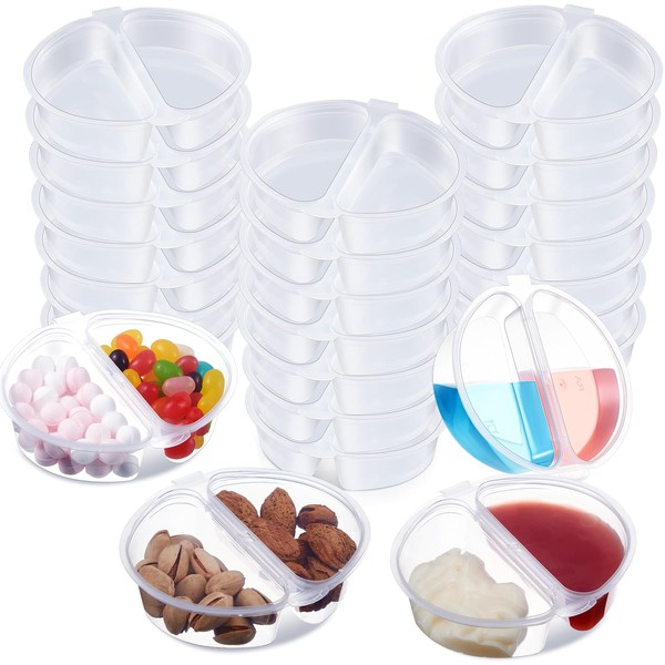 - Smart Storing and Portioning in 2 Compartment Snack Containers: enriched with capacity to hold up to 4 oz, these 100 double compartment snack containers are an innovative solution to your meal prep or snack portioning needs; The distinct two compartment feature allows you to store diverse condiments or snacks in one single container, making it a practical choice for a variety of occasions