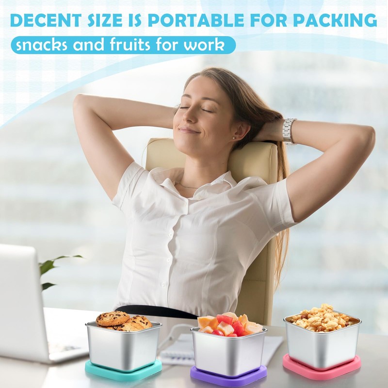 - Sufficient Quantity: you will get 12 pack stainless steel containers with lids, which are purple, green, pink, blue, orange, and hot pink, you can carry different snacks or fruits in containers of different colors, the quantity is sufficient to meet your needs