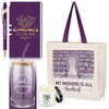 Blushtier Set of 5 Book Lovers Gifts Teacher Appreciation Include 16oz Drinking Glass with Lid Straw Scented Candle Canvas Tote Bag A6 Journal with Ballpoint Pen for Christmas Student Reader(Purple)