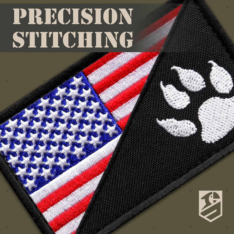 - PREMIUM EMBROIDERY crafted with sharp, high-density stitching, these embroidered patches feature a subdued US flag and paw print design that blends seamlessly with tactical setups—ideal for military backpack, dog vest, or patch board
