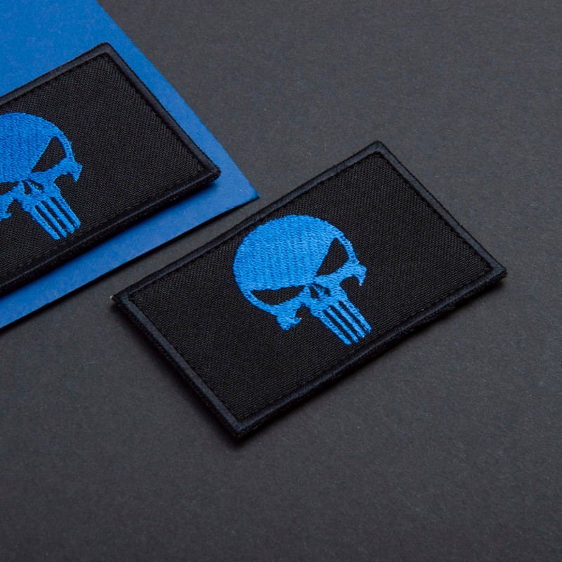 - The TACTICAL PATCH SET features 2 hook and loop patches, each 3x2 inches (5x8 cm) with a blue skull emblem; perfect as patches for hats, tactical vest patches, airsoft gear, and daily wear; easily attach to a tactical backpack or dog vest