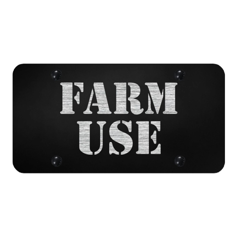 The Silver ENGRAVED Farm Use Black Car Tag is a personalized license plate suitable for cars, with a sleek black color and a glossy finish. Made of aluminum and metal, this durable plate features a diamond etched design and is chip and crack resistant. The front placement on the vehicle and bolt-on attachment make it easy to install, and it comes with a manufacturer warranty of 3 years. Perfect for aftermarket parts enthusiasts, this United States-made license plate adds a unique touch to any vehicle.