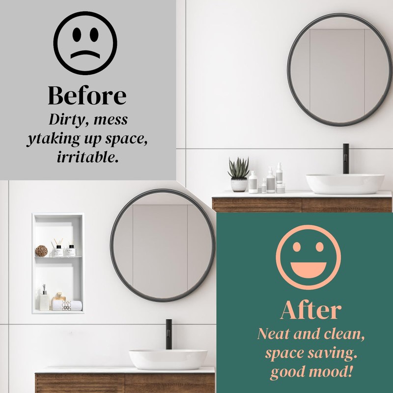 - 【MULTI-SCENE USE】- Shower niches can be installed not only in your bathroom for storage, but also in various scenes such as living rooms, kitchens, and dens to provide ornamental and practical features to your home.
