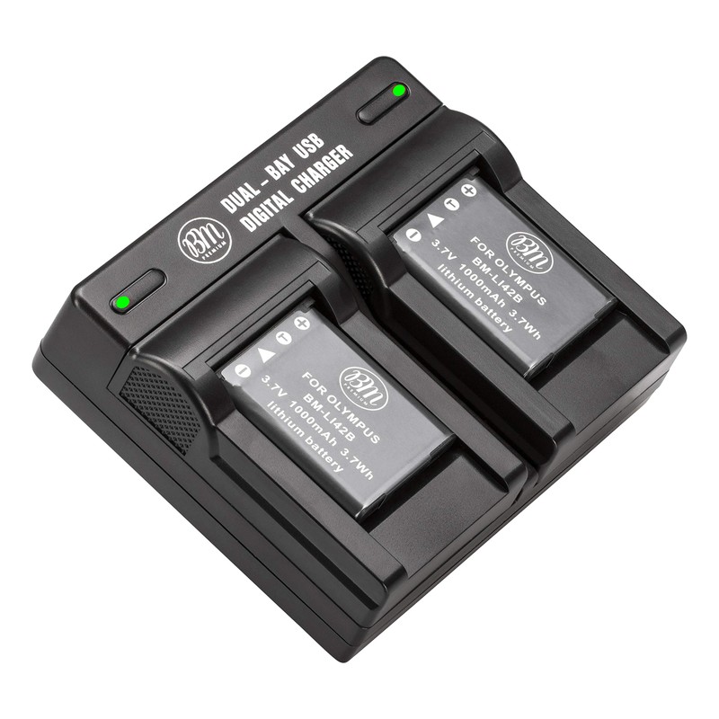 BM Premium 2-Pack of LI-42B Batteries and Dual Battery Charger for Olympus Stylus 1040, 1050W, 1060, 1070, 1200, 7000, 7010, 7020, 7030, 7040, Tough 3000, TG-310, TG-320, VR310, VR320, VR330 Camera