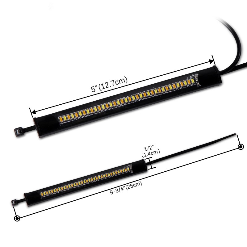 - Easy installation with self-adhesive tape and cable tie - Each individual strip Powered by 36 Super bright LEDs with 120 degree viewing angle for white and amber color - It will keep white color as day time running lights, turn to amber color as turn signal lights when turn left or right