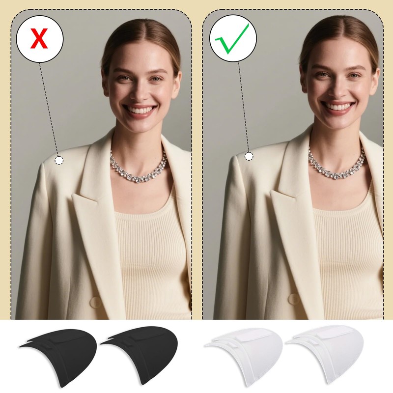 - PERFECT SHOULDER SHAPE:Designed to fit the human shoulder's contours, these shoulder pads help modify high and low shoulders, preventing clothes from slipping off while enhancing your overall silhouette