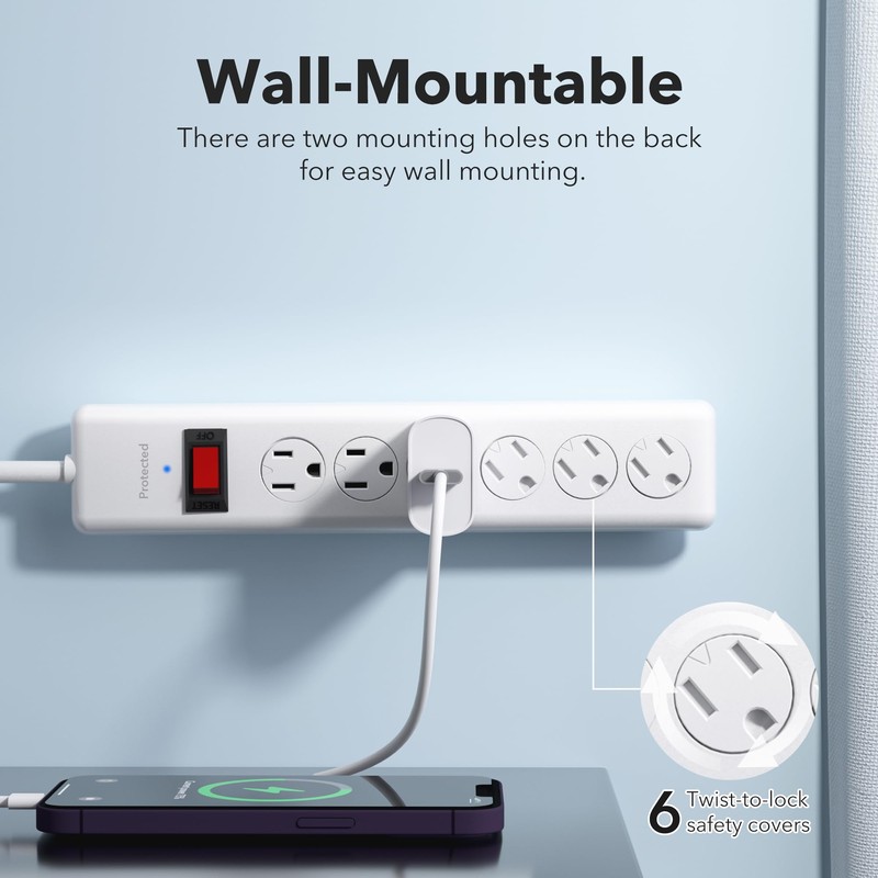 - 【600J Surge Protection】 - Protect your appliances from lightning strikes, power surges, and voltage spikes with built-in surge protection, ensuring your electronics remain safe and secure.
