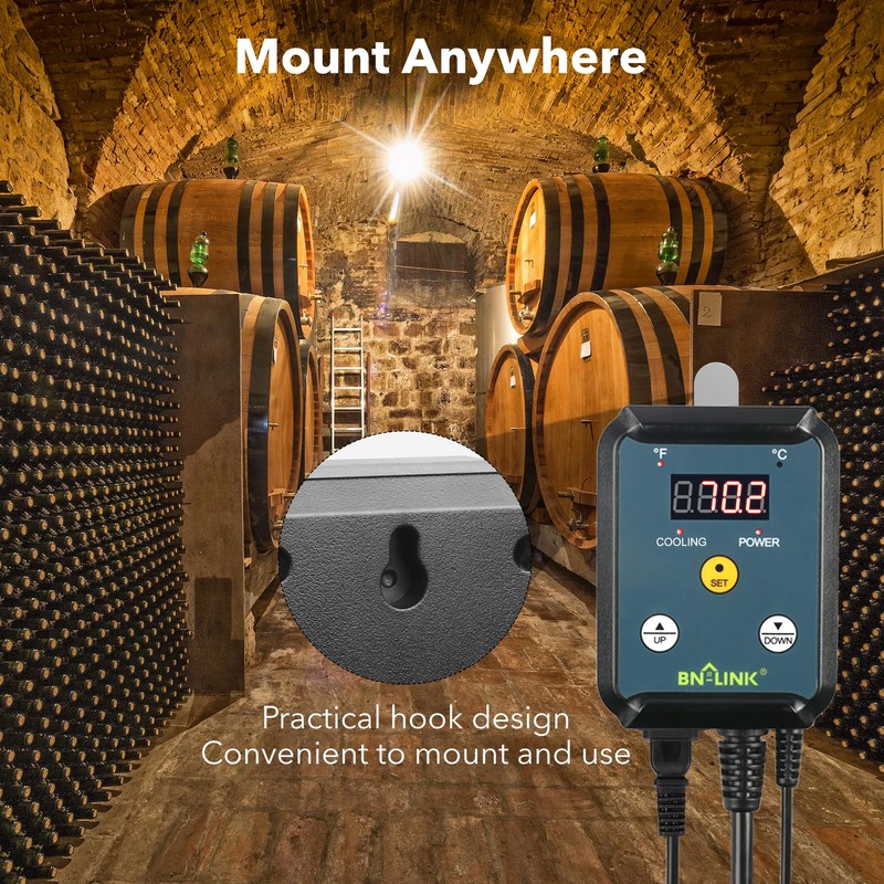 - ✓ EFFORTLESS COOLING SETUP: Simply place the probe, plug-in the thermostat controller, and use the large 3-button interface to choose your desired temperature setting. Digital display supports units in both Fahrenheit and Celsius. Note: the controller is designed to have a 2-3 degree buffering zone before powering on again after reaching set temperature.
