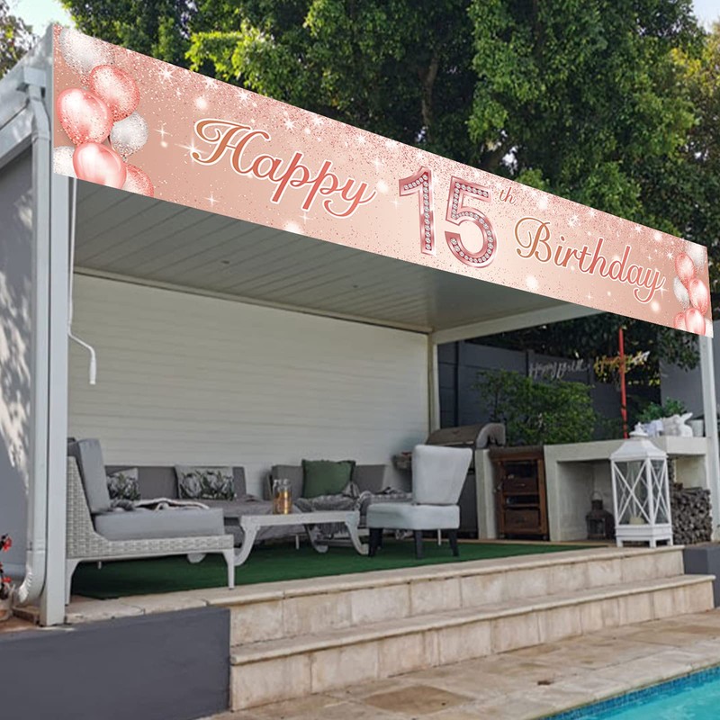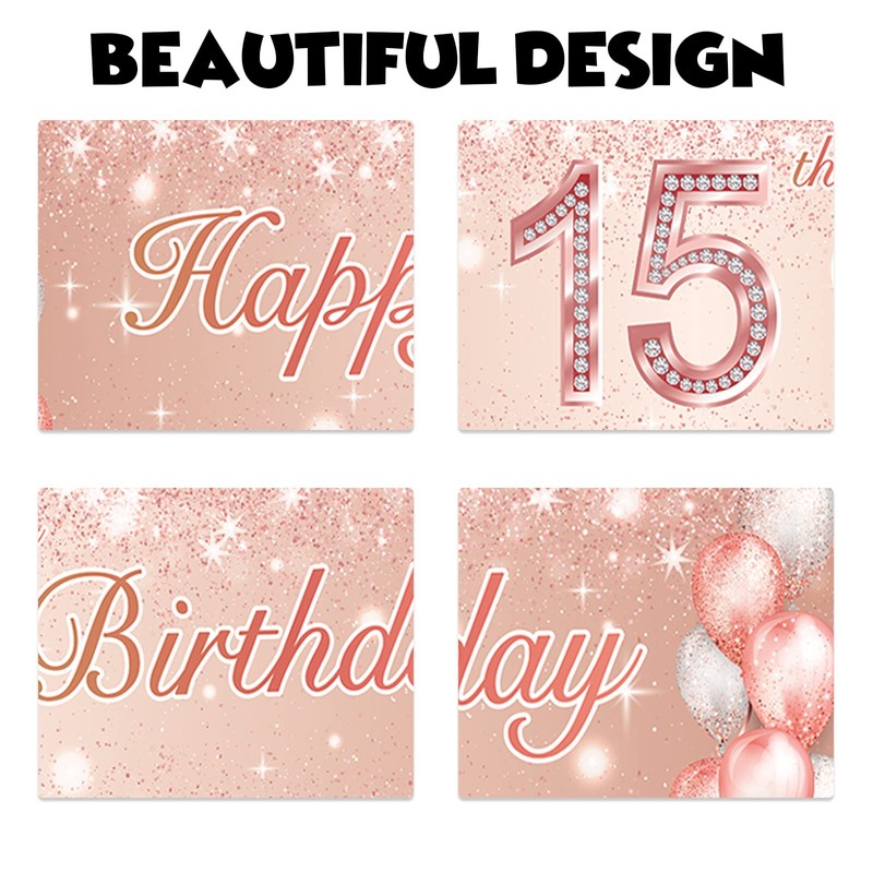 Bn-RoseG-15 Banner de Feliz Cumpleaños