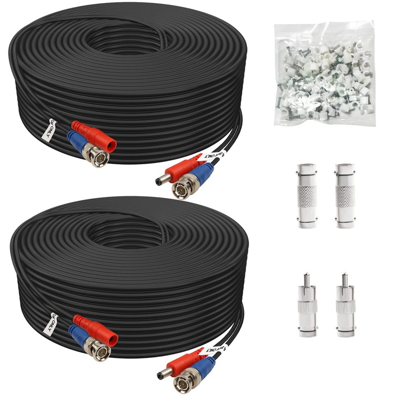 - Package Included:2 Pieces and each piece is 200 Feet BNC Video and Power Security Camera Cable,2 Pieces BNC to BNC Female Connectors,2 Pieces BNC Female to RCA Male Connectors,100 Pieces Cable Clips.