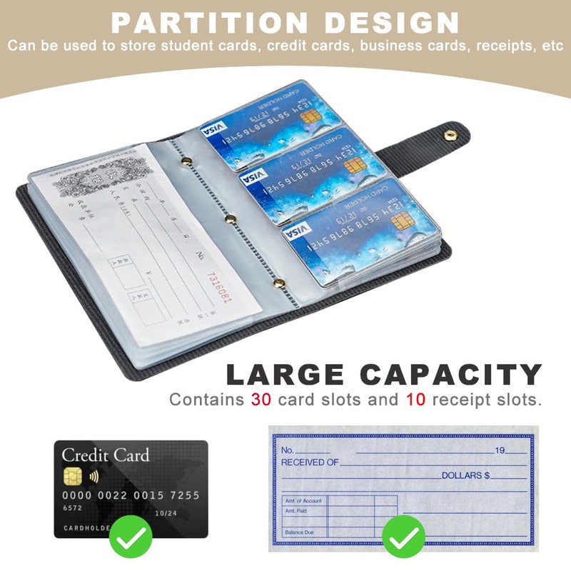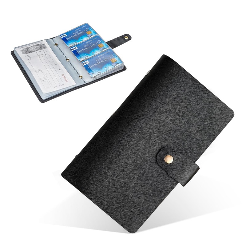 - LARGE CAPACITY This elegant black card holder with 30 card slots and 10 savings book slots provides enough space for all your essentials.