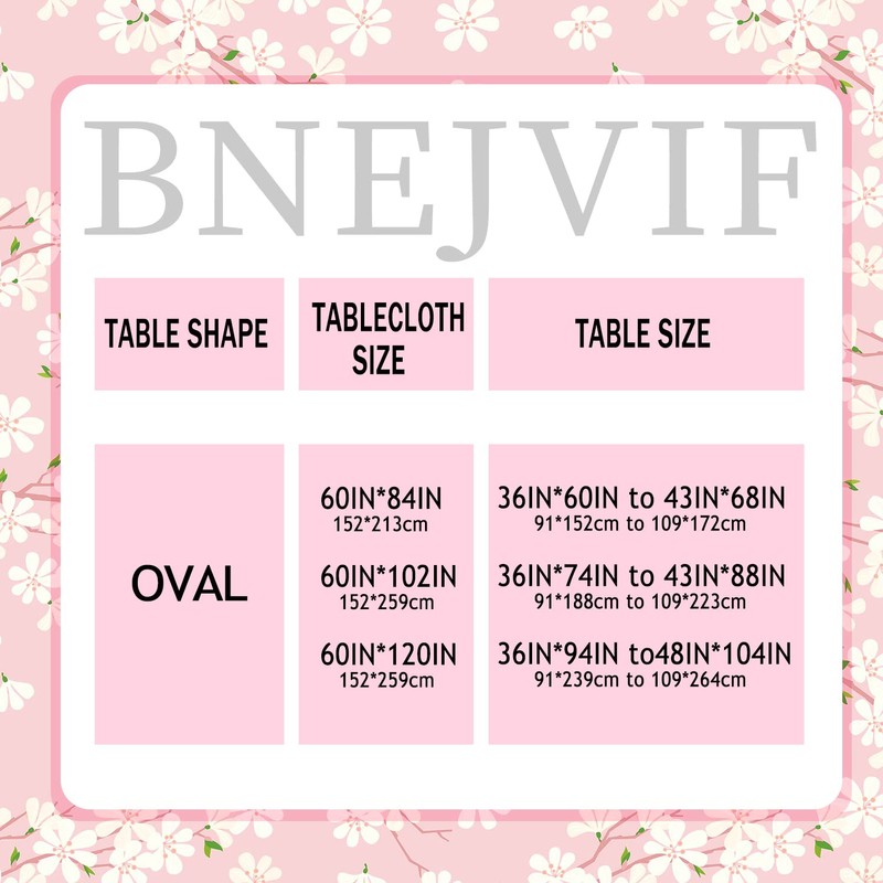 - Three Size: 60” X 84” ( 152 X 213 Cm ), 60” X 102” ( 152 X 259 Cm ), 60” X 120” ( 152 X 305 Cm). The Flowers Oval Table Cloth Is Suitable For Most Household Oval Table, Please Measure Your Table Size Before Buying.