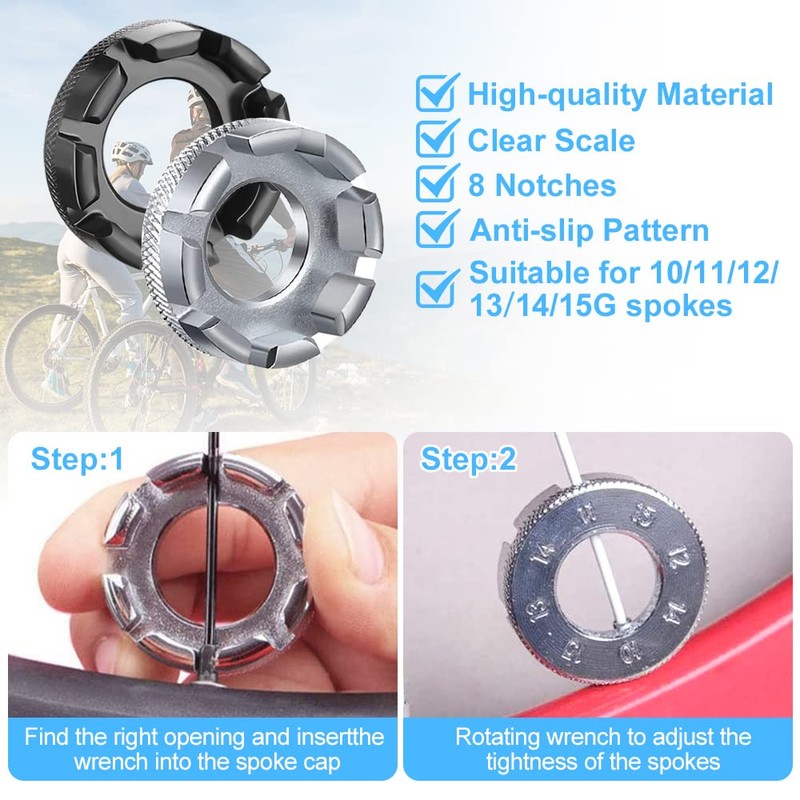 2. This bicycle key tool kit is suitable for both road bikes and mountain bikes, helps tighten the spokes and align wheels and is ideal for emergencies in a bag on your bike.