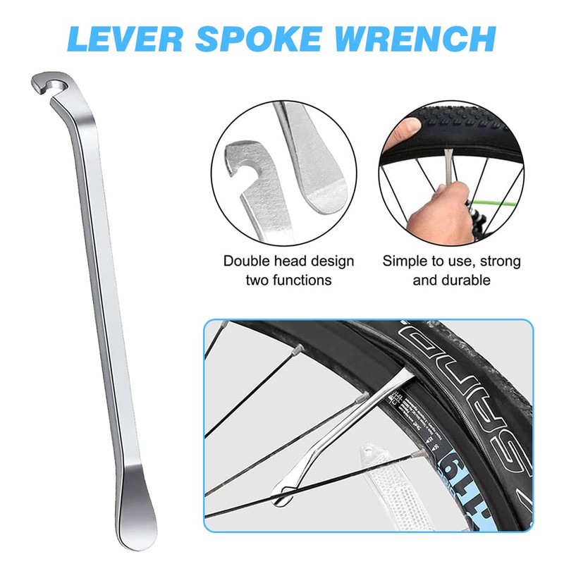 - Spoke key kit: includes 2 bicycle spoke keys with 8 teeth, 2 bicycle spoke keys with rubber grip, 1 tyre lever, Y-shaped hex key and Y-shaped sleeve. Can be used as a travel tool kit to solve most bicycle problems.