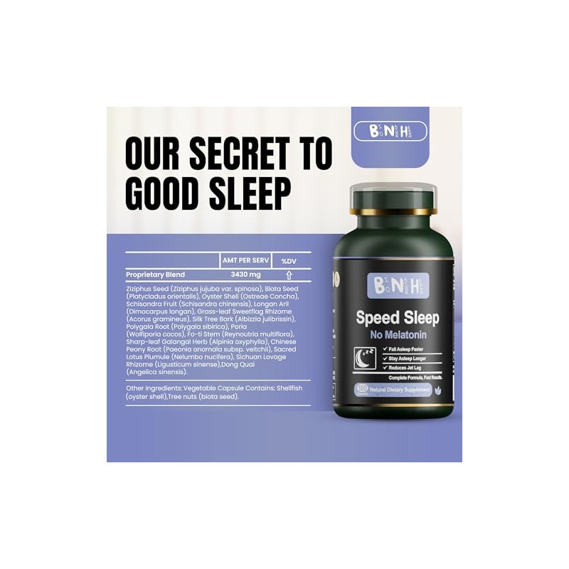 BNH Speed Sleep - Fórmula sin melatonina - Medicina antigua china - 15 hierbas - Otoño y permanece dormido más rápido - Despierta renovado y energizado - Sin sensación de aturdimiento - Relajarse