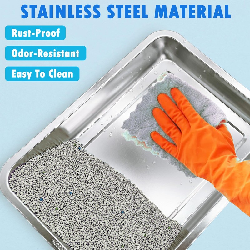 - Stainless Steel Material: Metal kitten litter box is made of sturdy stainless steel, it will be stronger and safer, not easy to rust; A smooth surface makes it easier to scrub, no more sticky litter or hard to clean corners