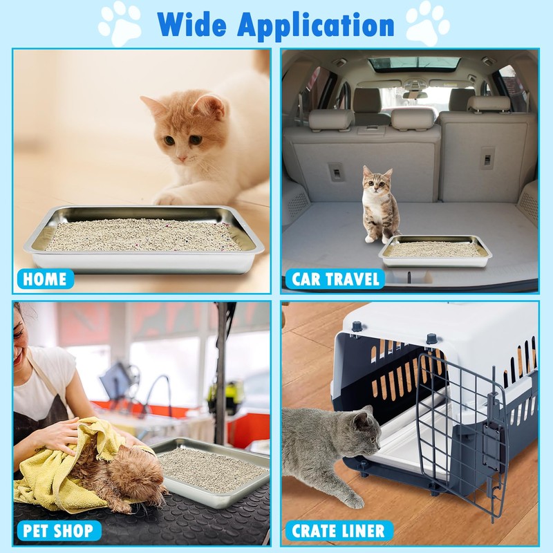 - Enough Quantity: Includes four stainless steel kitty litter pans and a litter scooper, providing a perfect solution for families with multiple kittens, can be easily replaced