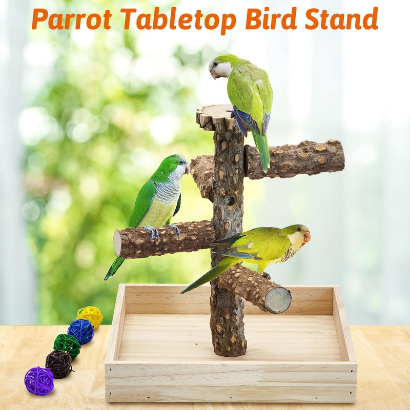 • Product Size: 9.6x9.6x10.6 inch.Bird training perch can accommodate several parrots at the same time. Bnosdm tabletop bird perch perfect for budgies, cockatiels, lovebirds,Conures and other similar sized birds. This is perfect gift for a feathered partner