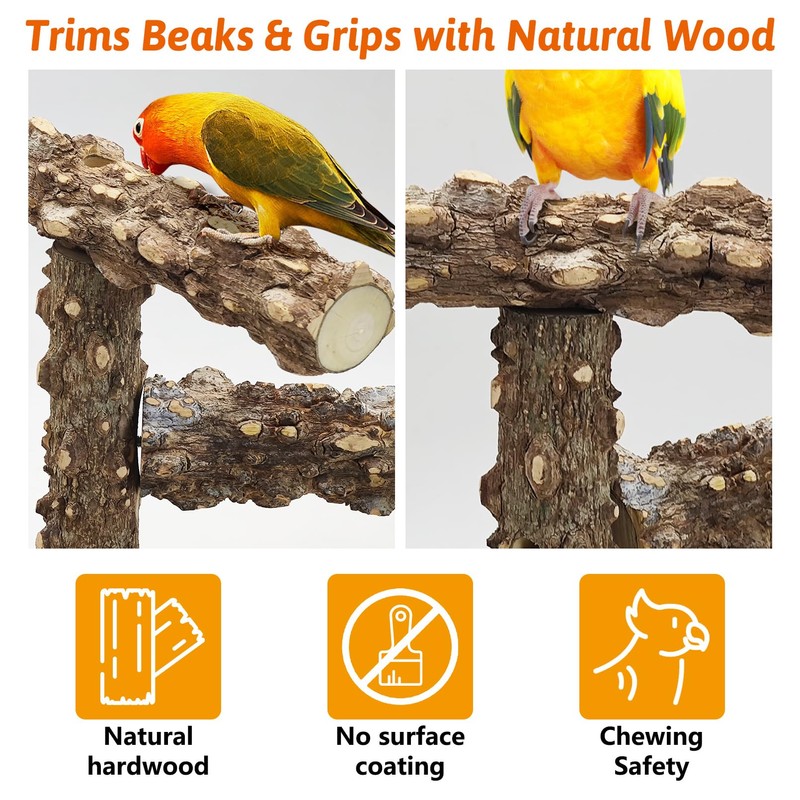 - Natural Prickly Ash Wood: Bird tree stand is safe for chewing, features a rugged texture that naturally trims beak and grips claws. Perfect for toys, perches, and interactive play, this wood ensures your feathered friend stays healthy and engaged
